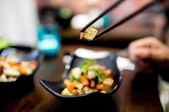 Az előételek közül a földimogyorós szárított tofu (780 forint) friss és pikáns, izgalmas fogás, nem csak vegetáriánusoknak és vegánoknak ajánljuk, akárcsak a lótuszgyökérkockákat (980 forint) – a zöldség kellemesen édeskés íze jól harmonizált a hozzáadott szósszal.